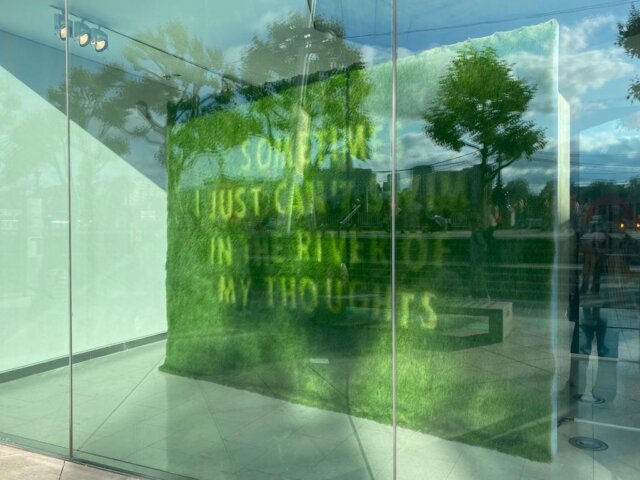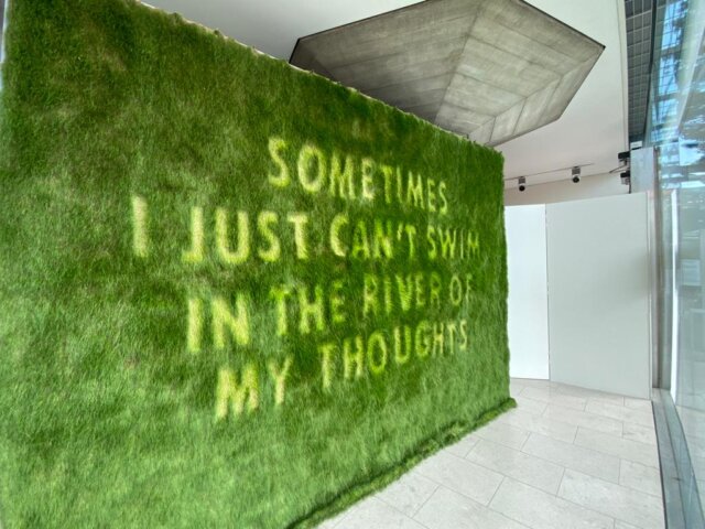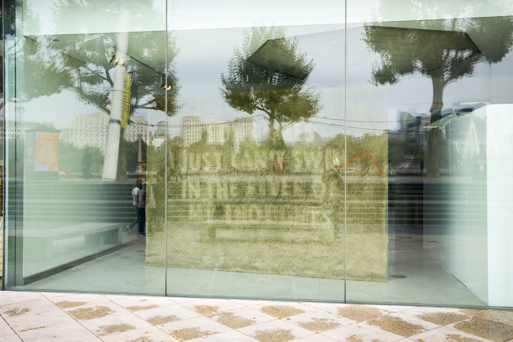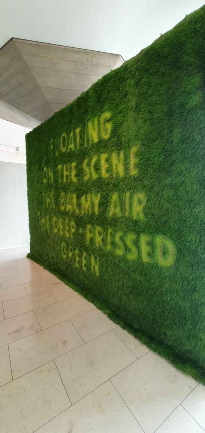 We selected poetic phrases and stencilled the words into growing canvases of grass suspended in the entrance to the Festival Hall.